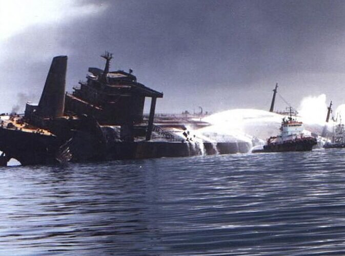 Uno era español, el Barcelona. Se hundió cuando le alcanzaron dos misiles de fabricación francesa Exocet mientras cargaba petróleo en la terminal iraní de Larak, en el Estrecho de Ormuz, en mayo de 1988. Murieron cuatro españoles.
